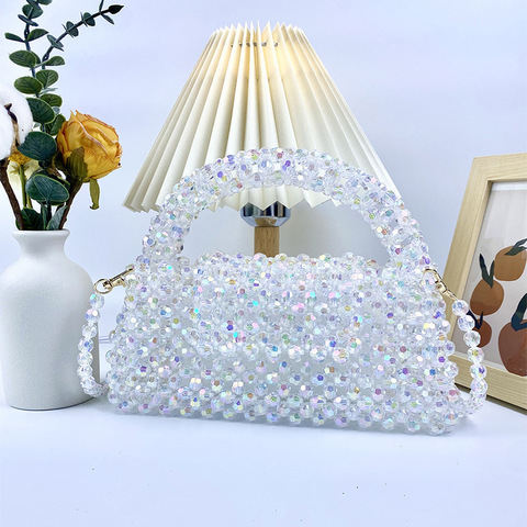 กระเป๋าลูกปัดคริสตัลสีทึบสำหรับผู้หญิงกระเป๋าถือไข่มุกทำมือปรับแต่งได้
