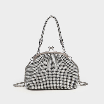กระเป๋าคลัทช์คริสตัลสำหรับผู้หญิงกระเป๋าคลัทช์สะพายไหล่ใบเล็กหรูหรามีลายสี่เหลี่ยมประดับมุกอุปกรณ์เสริมสำหรับงานราตรี